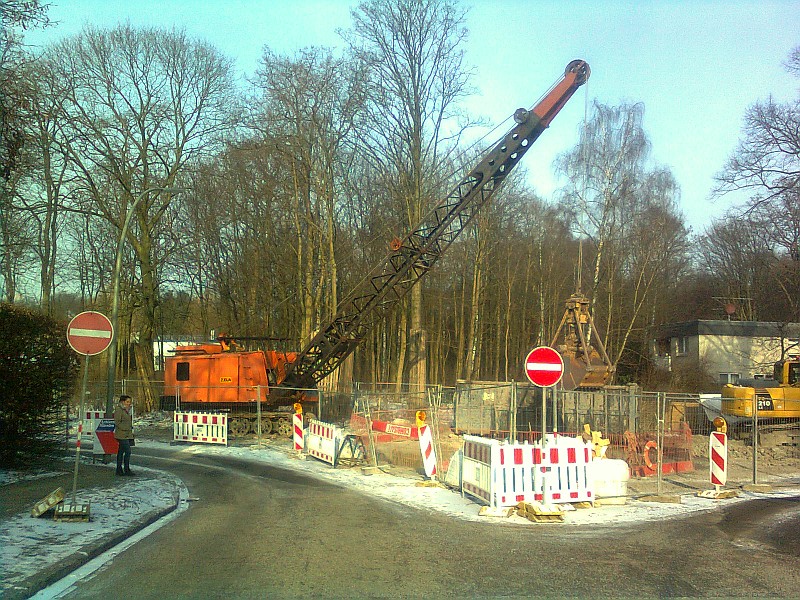 Herbst 2010 Direkt vom Vorbesitzer in Oberbayern ist der M 154 in die Kiesgrube bei Stapelfeld transportiert worden, um seine Arbeit aufzunehmen. Der Bagger ist bislang die größte Anschaffung in der Geschichte unserer Firma gewesen. |