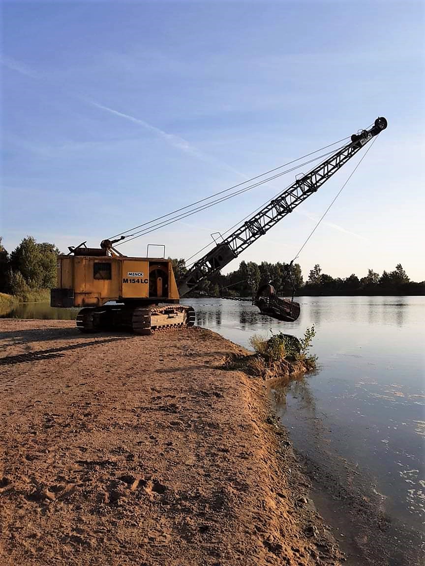Kiesbaggern, Oktober 2021 Das klassische Aufgabengebiet des Seilbaggers, Kies baggern, vernachlässigen wir natürlich nicht! |