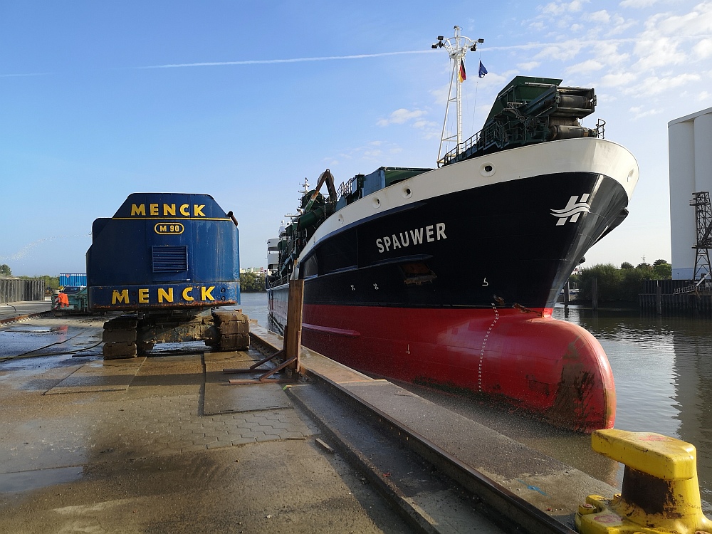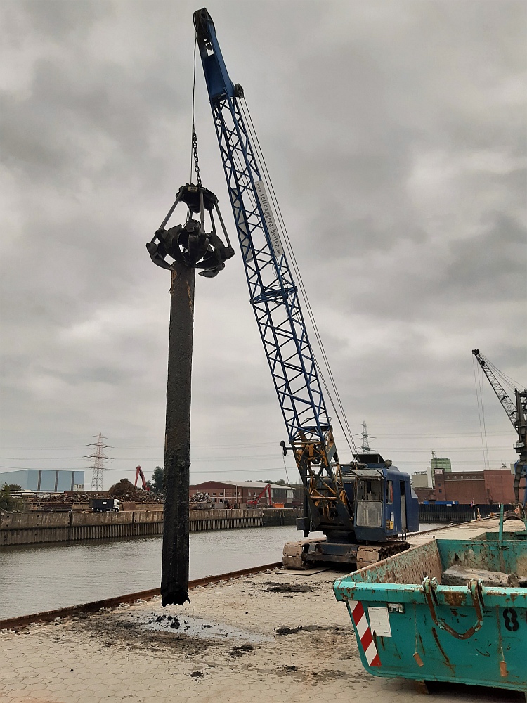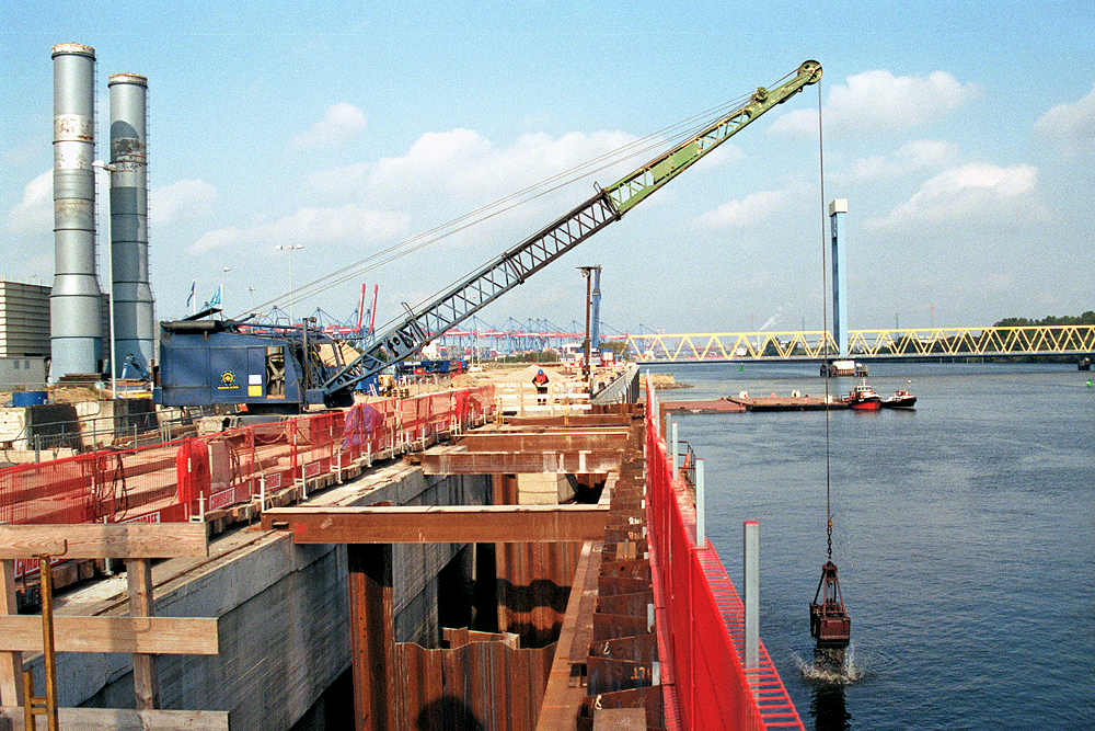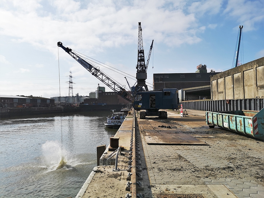 Abriss und Neubau einer Kaimauer im Hamburger Hafen, mussten die letzten
