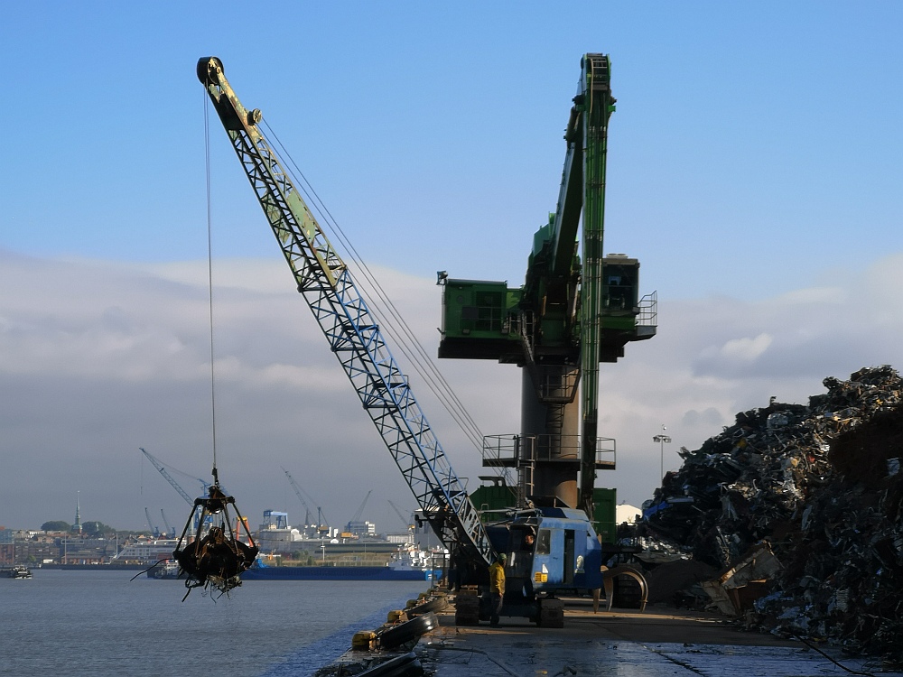 Hamburg, 2020 Bei Umschlagarbeiten ins Wasser gefallener Metallschrott wird geborgen. |