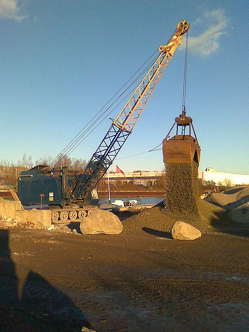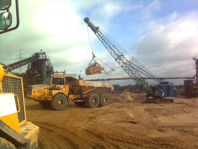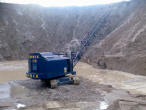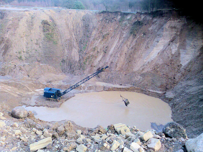 Kiesabbau bei Mölln, 2007 Der M 90 in seinem Element: Im Januar 2007 wurde in einem sehr tiefen Loch in Auftragsarbeit Kies gefördert. |