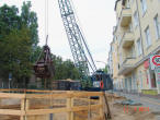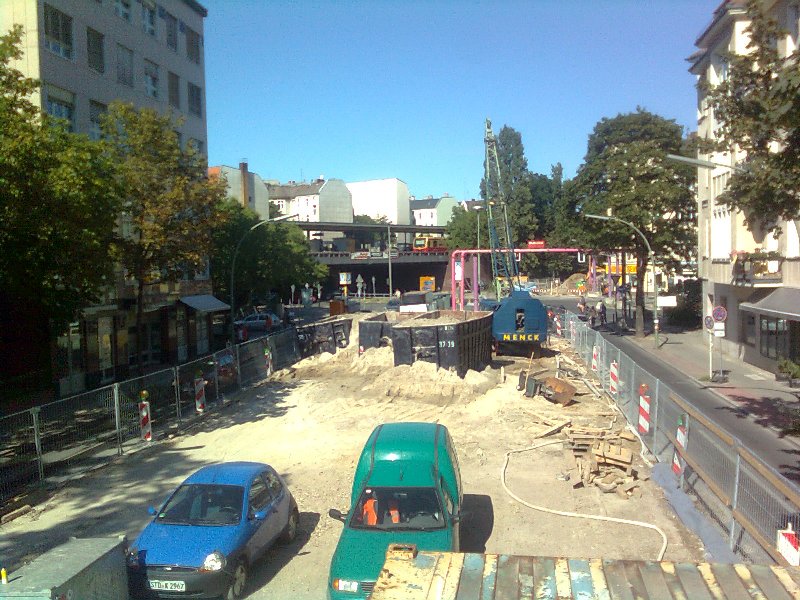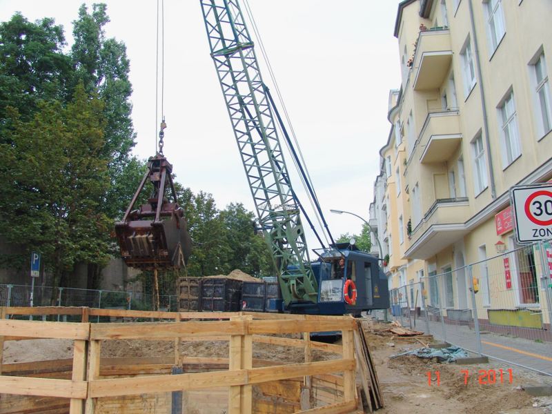 Berlin-Friedenau, Juli 2011 Mit der S-Bahn im Hintergrund als Beweis: Ausschachtarbeiten in Berlin-Friedenau auf bis zu 23 m Tiefe. |