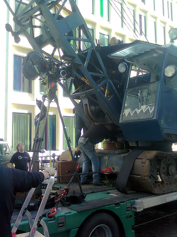 einen Kinofilm, Frühjahr 2010 Bei Dreharbeiten für einen Kinder-Kinofilm dient der M 90 als wichtiges Requisit. Alle Szenen mit Schauspielern wurden natürlich unter Kontrolle des richtigen Baggerfahrers durchgeführt, der dazu im Hintergrund - dunkel gekleidet und mit Skimaske getarnt - versteckt war. Einige Szenen wurden direkt auf dem Tieflader gedreht, andere fanden in Den Haag und Brüssel statt. Dabei fährt der Bagger in Brüssel an den Landesvertretungen von Niedersachsen und Nordrhein-Westfalen vorbei. Weitere Bilder vom Dreh zeigen den M 90 vor dem königlichen Gestüt in Den Haag, vor echter Häuserkulisse in der selben Stadt sowie aus luftiger Höhe mitten in den Haag. |