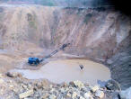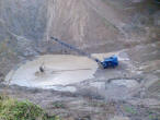 Kieswerk, September 2011 Ausbaggern eines Schlammteichs und verladen des Aushubs auf Dumper. |