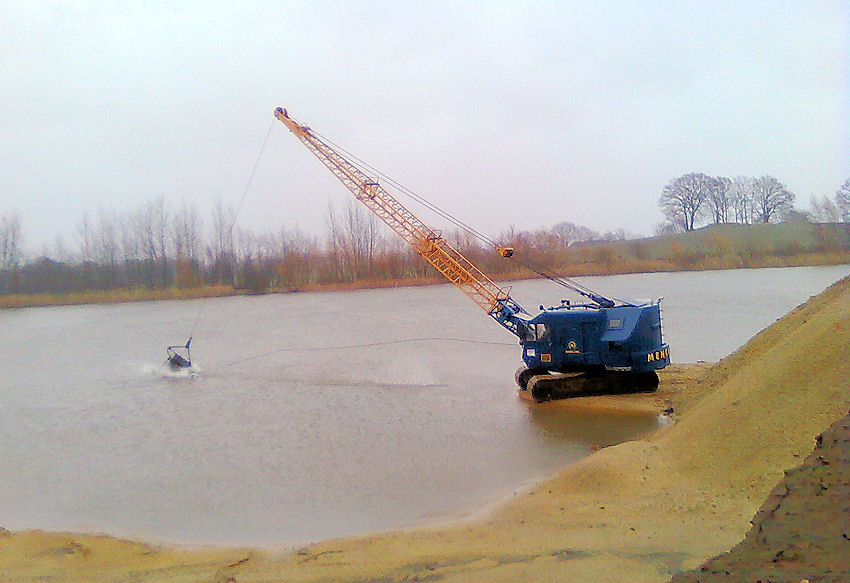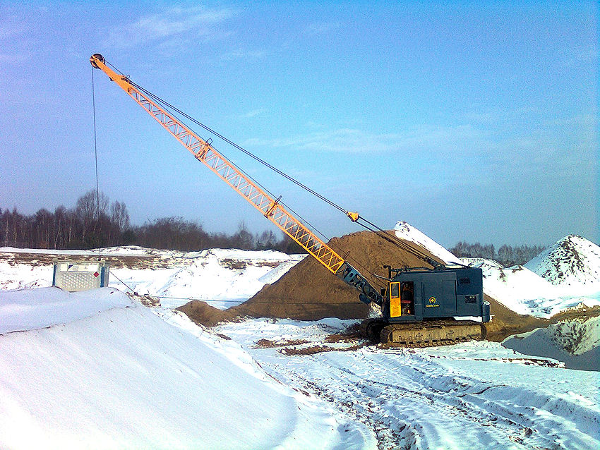 2010/2011 Bei nahezu jedem Wetter kann Kiesabbau erfolgen. Der M 92 LC ist im Winter 2010/2011 in der Nähe von Scharmbeck damit beschäftigt. |