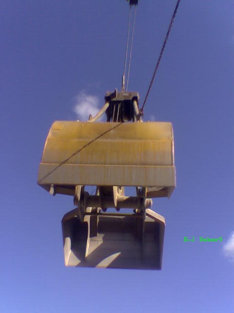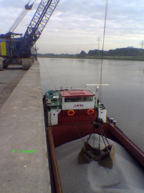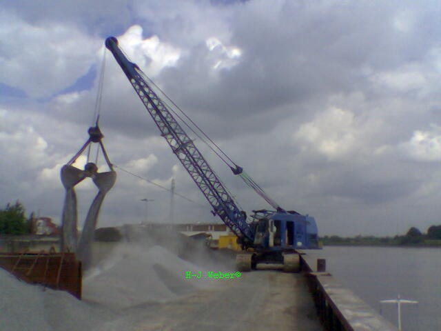 Hamburg, 2006 Unser M 92 LC war 2006 oft mit der Entladung von Binnenschiffen im Hamburger Hafen beschäftigt. Auf den Bildern wird die Janina geleichtert. Das lose Schüttgut wird an Land zunächst auf Halde gekippt. |